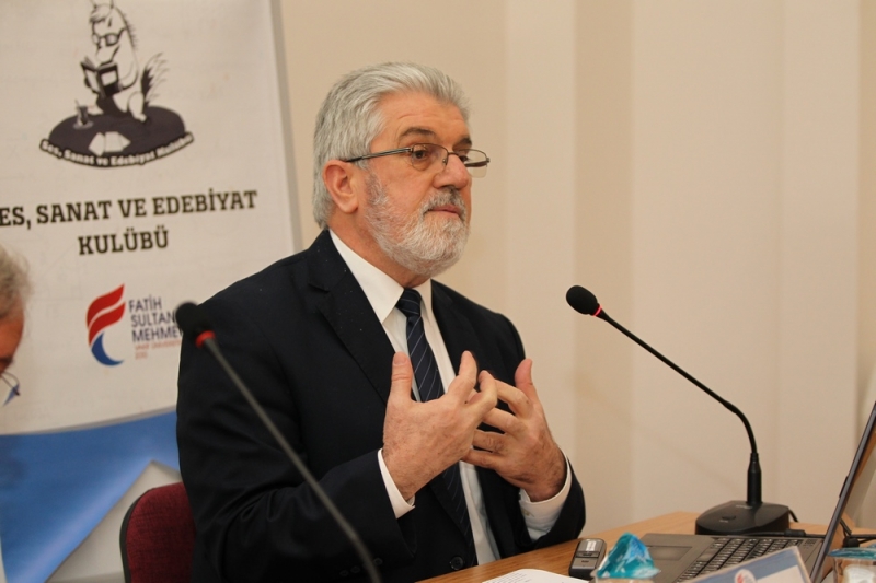 Rektörümüz Prof. Dr. M. Fatih Andı, hüsn-i hat sanatının temel özelliklerini, resim ve divan şiiri ile bağlantısını ele aldığı konuşmasında, bu sanatın tüm İslâm sanatlarından daha fazla İslâm medeniyetini sanat bağlamında temsil ettiğini vurgulayarak, “Hüsn-i hat belki de İslâm sanatlarının ‘anası’ demeye layık bir sanat. Elbette bu minyatürün, tezhibin temsil etmediği anlamına gelmez ama oransal olarak baktığımızda Kur’an-ı Kerim’in yazısıyla imal edilmesi, daha çok ayet ve hadisler üzerinden kendisini inşa etmesi dolayısıyla hüsn-i hat sanatı bir temsilci sanattır.” dedi.
